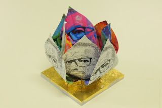 Mixed Media – Bamboo base, cardboard, pva glue, paint, gold leaf, printed photoshoped images, copper wire.